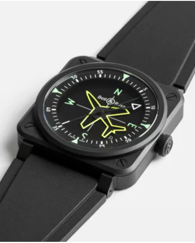 999 pcs Limited editionInstrument watch designer, Bell & Ross, adapts the most iconic dial yet of an aeroplane cockpit with the BR-03 Gyrocompass.