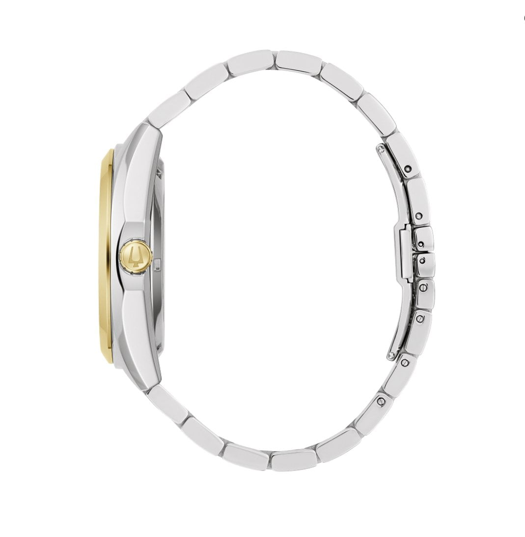 DETAILS Part of the Surveyor line of Bulova watches, this updated classic automatic watch offers all of the detail and quality you would expect in a luxury watch, while staying at an affordable price point. The stainless steel case and bracelet is paired with a silver-tone dial with gold-tone accents and an open aperture to view the movements balance wheel and escapement. The screw-back case is topped with a mineral crystal exhibition window to showcase the automatic movement powering the timepiece. This beautifully detailed, quality timepiece is destined to become a new favorite in any collection.