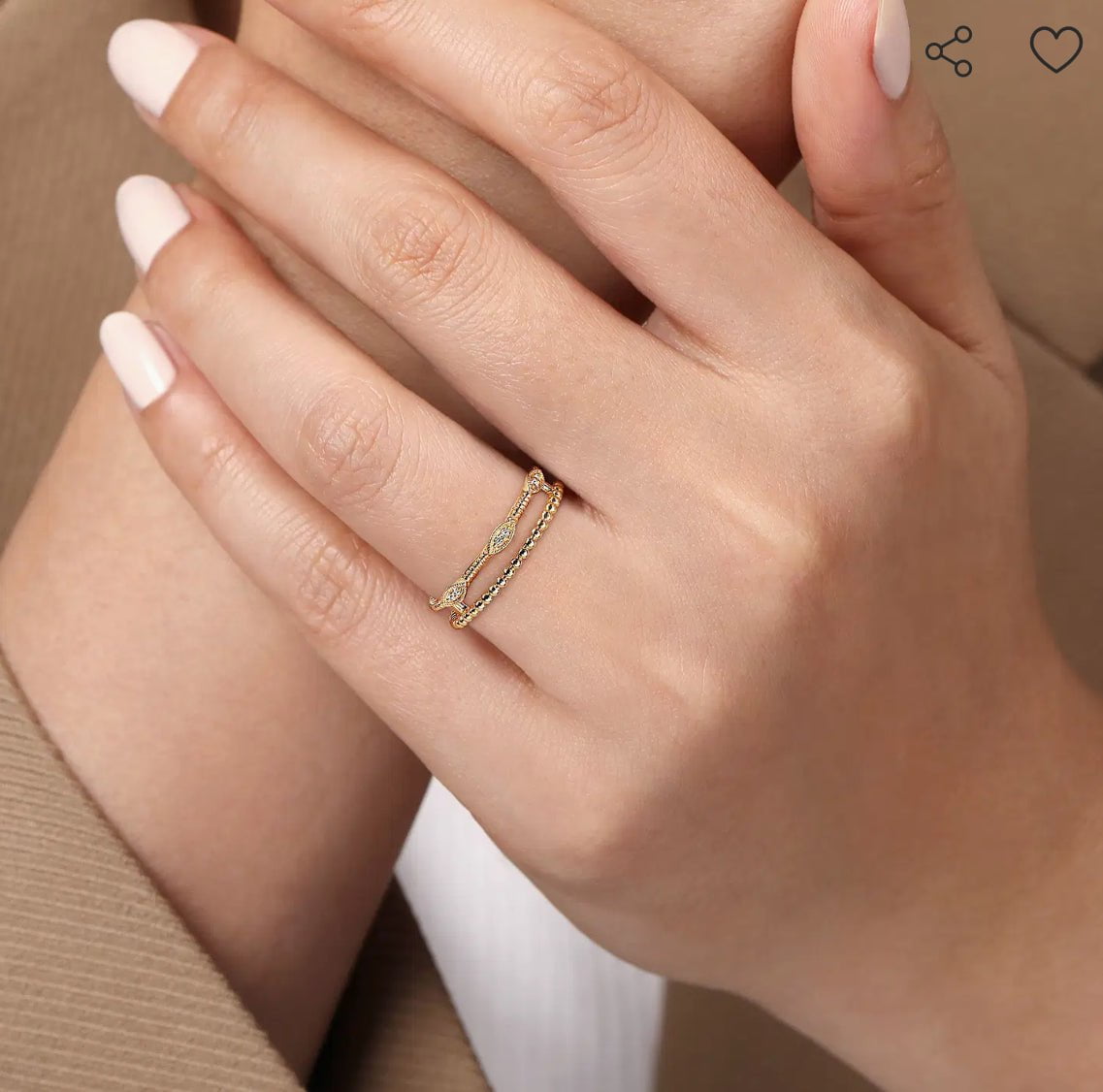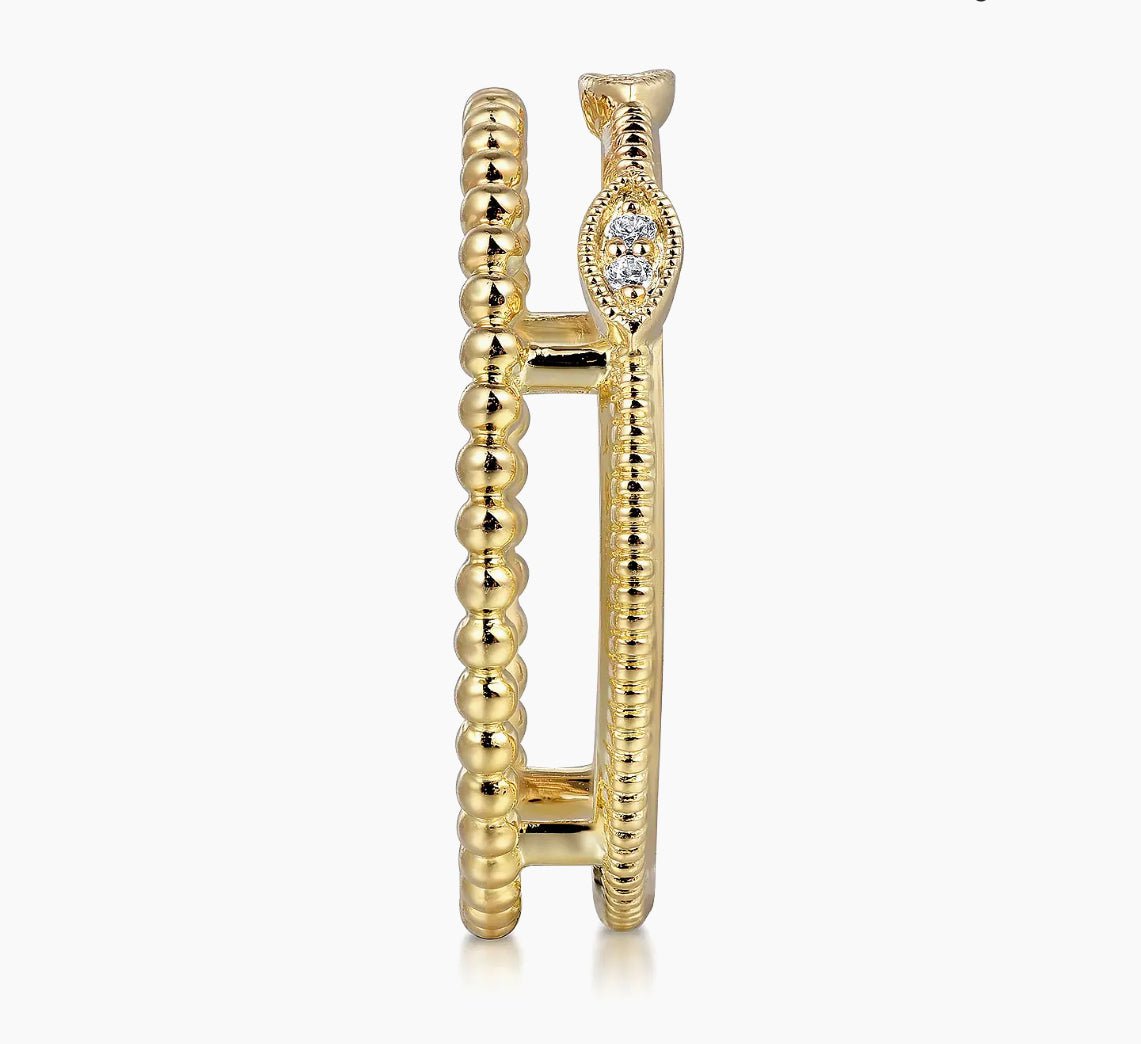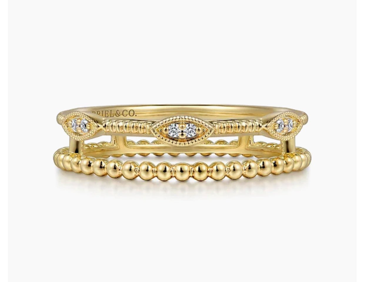 Gabriel & Co-14K Yellow Gold Diamond Bujukan Marquis Shape Easy Stackable Ring LR52493Y45JJ