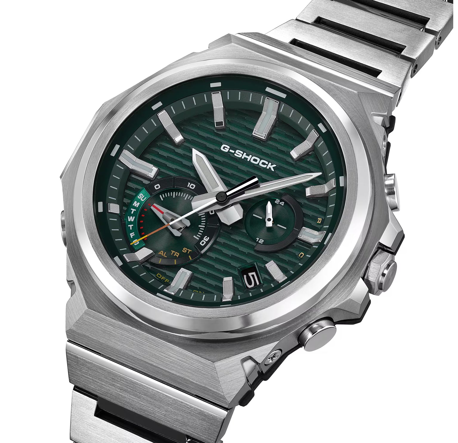 Regular timekeeping: Analog: 3 hands (hour, minute (hand moves every 10 seconds), second), 2 dials (24-hour, day)