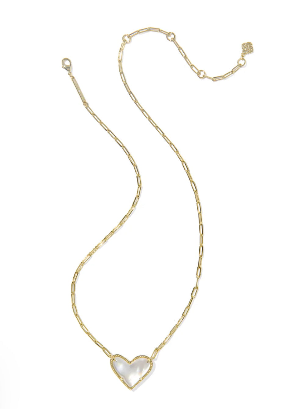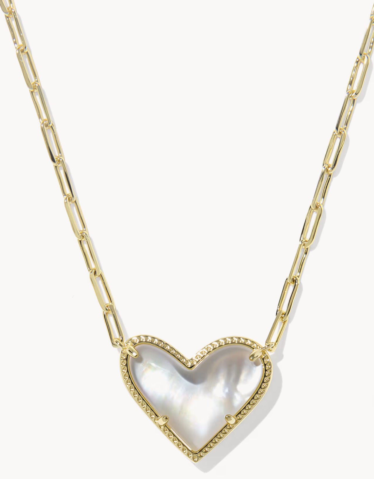 ARI HEART STATEMENT PENDANT NECKLACE GOLD IVORY MOTHER OF PEARL