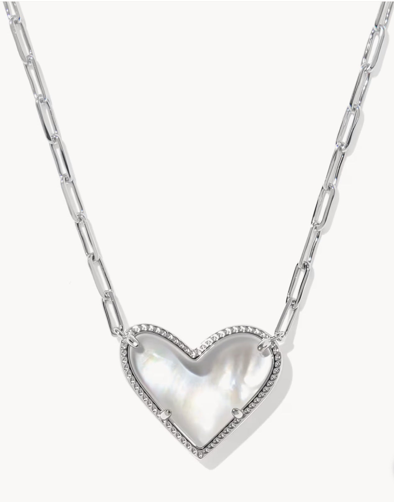 ARI HEART STATEMENT PENDANT NECKLACE RHODIUM IVORY MOTHER OF PEARL