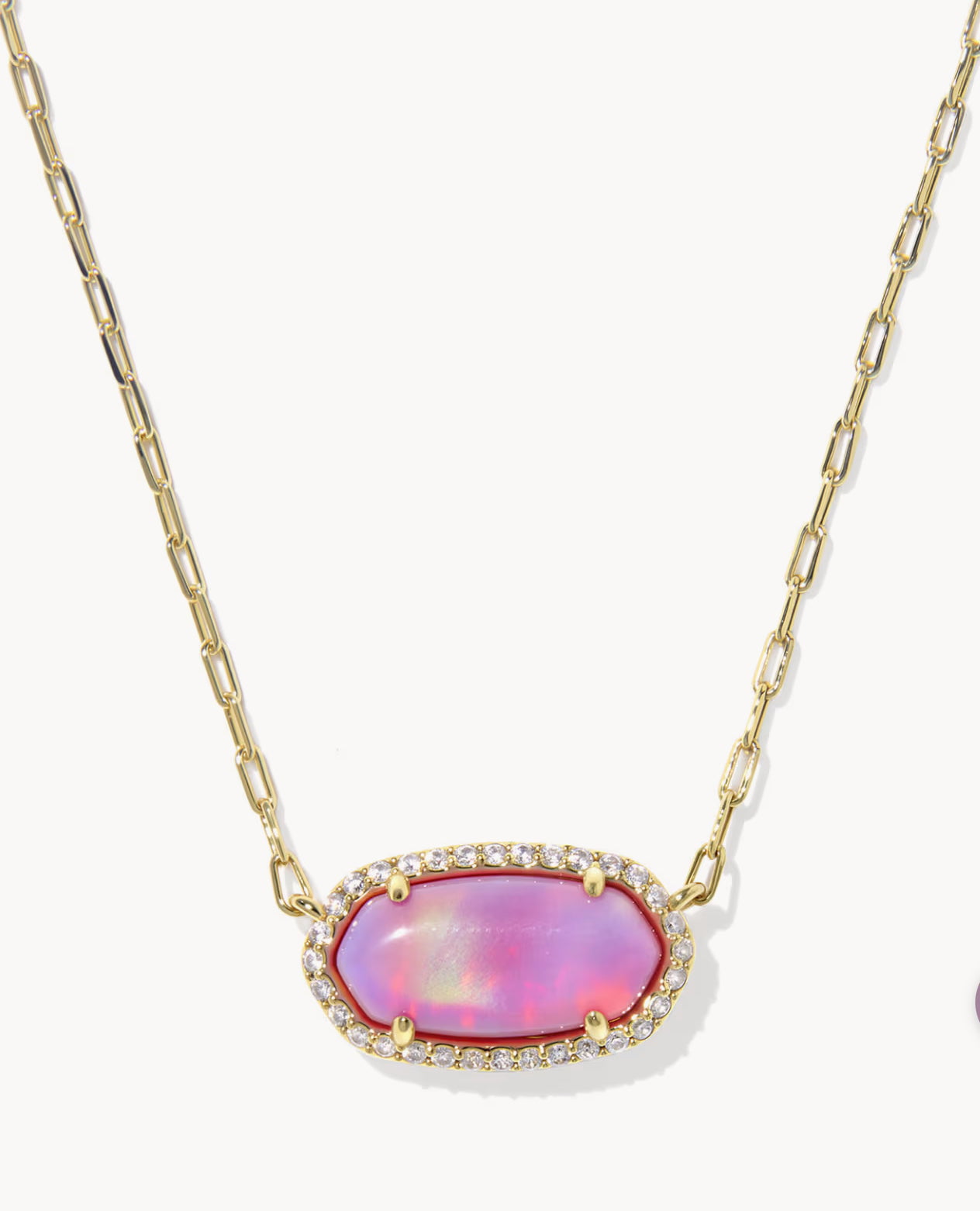ELISA PAVE FRM PENDANT NECKLACE GOLD PINK OPALESCENT RESIN