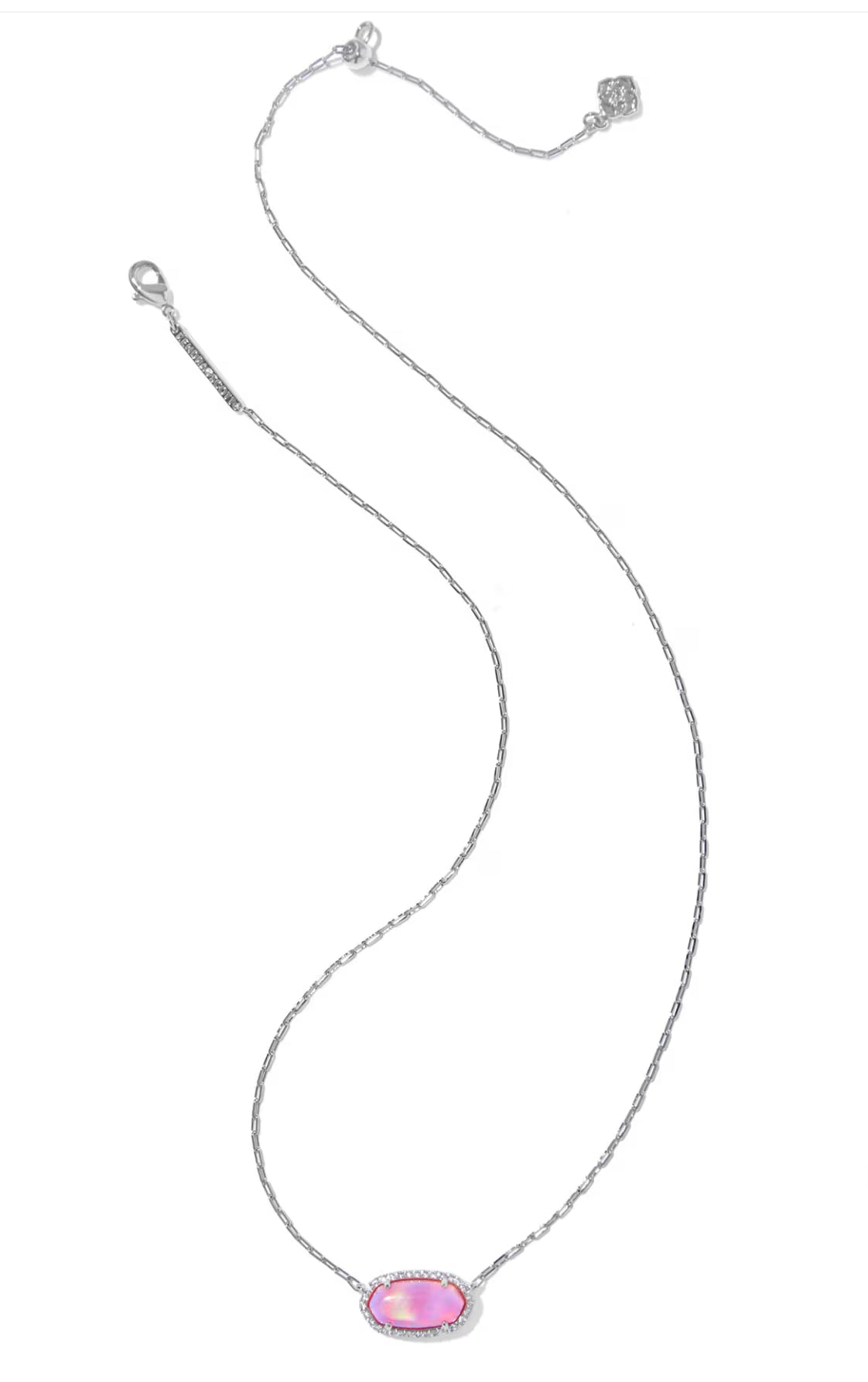 ELISA PAVE FRM PENDANT NECKLACE RHODIUM PINK OPALESCENT RESIN