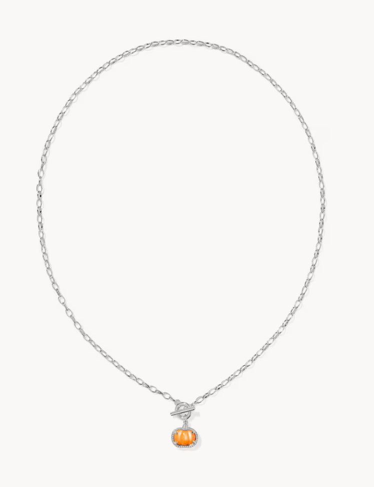 It’s no trick that the Pumpkin Silver Link and Chain Necklace is the perfect treat for fall! Featuring a playful pumpkin-shaped charm on a paperclip chain with a toggle closure, this necklace is bound to be your go-to accessory for all things autumn.