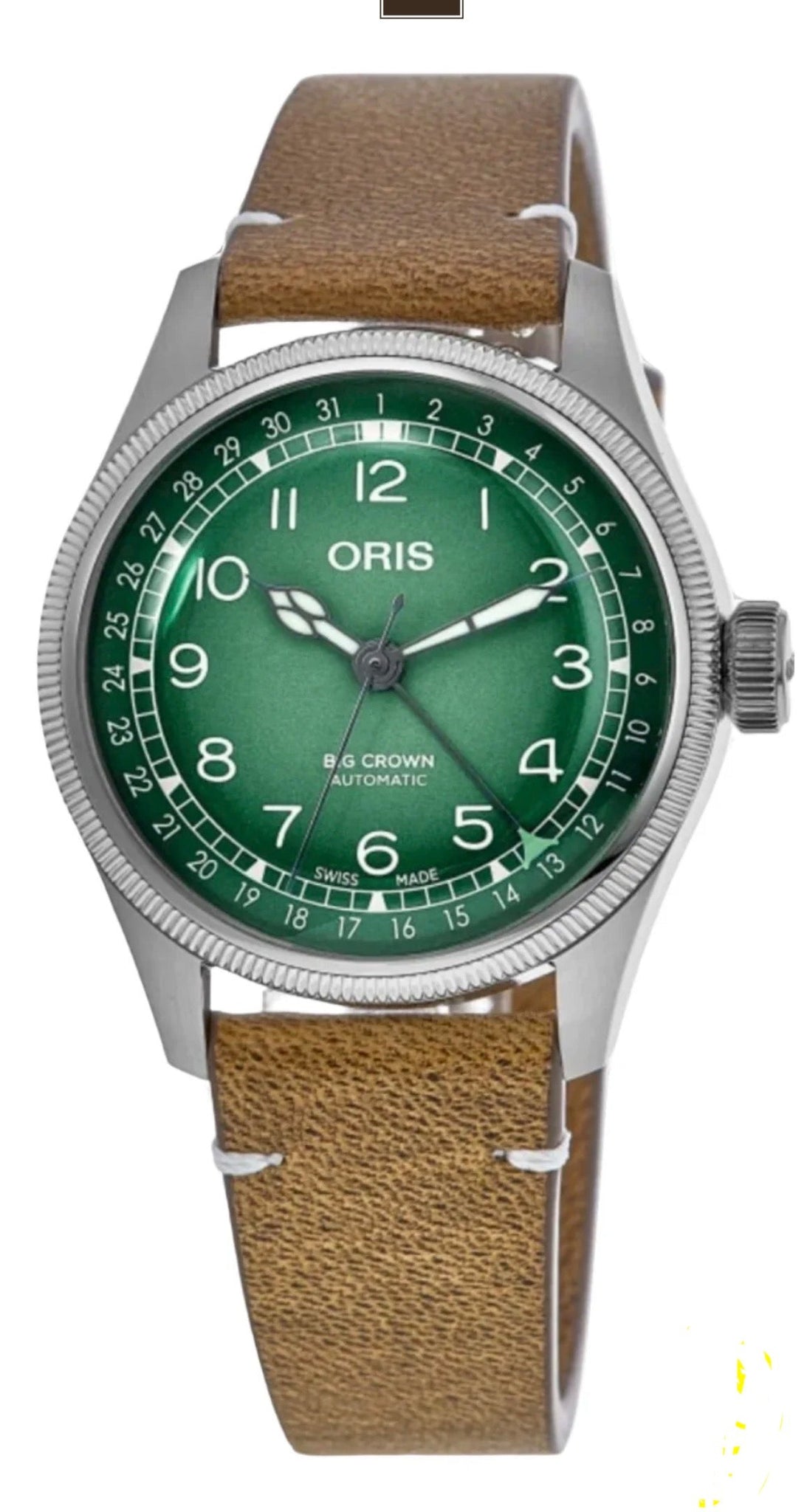 Centre hands for hours, minutes and seconds, date centre hand, instantaneous date, date corrector, fine timing device and stop-second