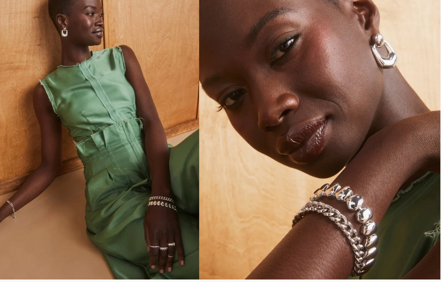 Every look deserves some shine. Elegant yet edgy, the Kaitlin Silver Chain Bracelet adds some much-needed glamour to any wrist. Featuring beautifully brushed metal and a shape inspired by our custom Daphne stone silhouette, you can’t go wrong with this metallic must have.