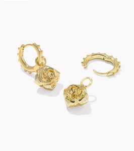 Get two stunning looks in one with the Mallory Rose Gold Huggie Earrings. Wear them with the sculptural roses for a romantic look or take them off for a more subtle vintage look with beautifully detailed huggie hoops. No matter the style, these earrings are ready to elevate any look with artistic elegance.